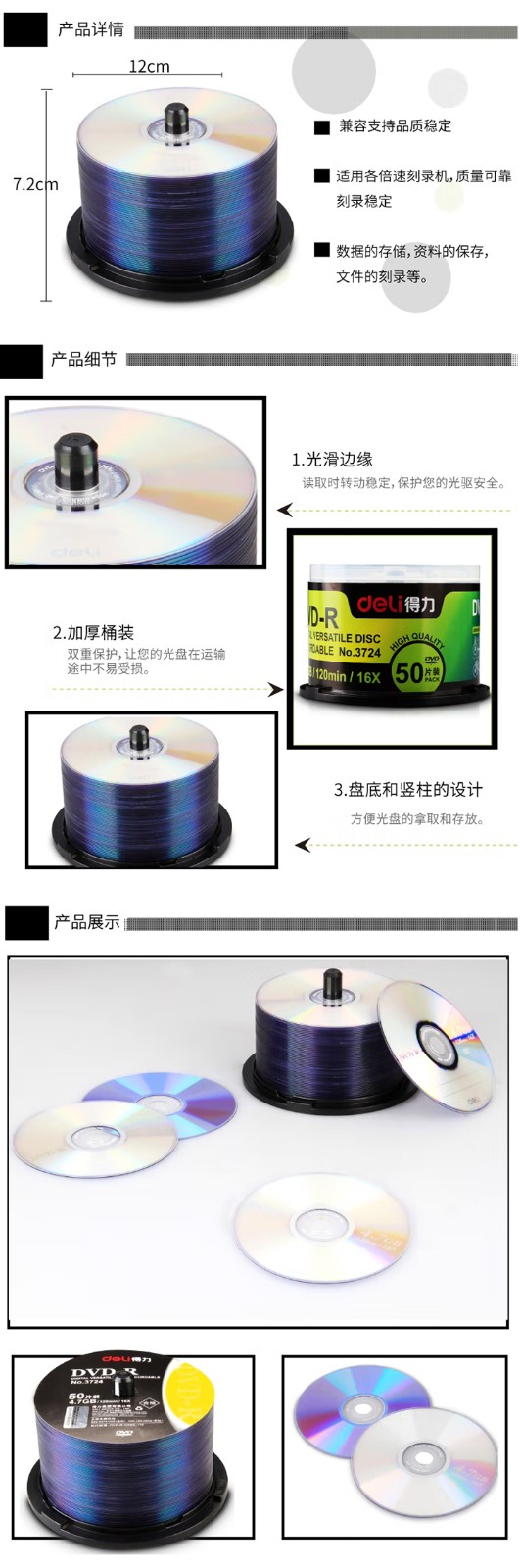 得力 3724 光盤 DVD-R 刻錄光盤 4.7G 50片/筒