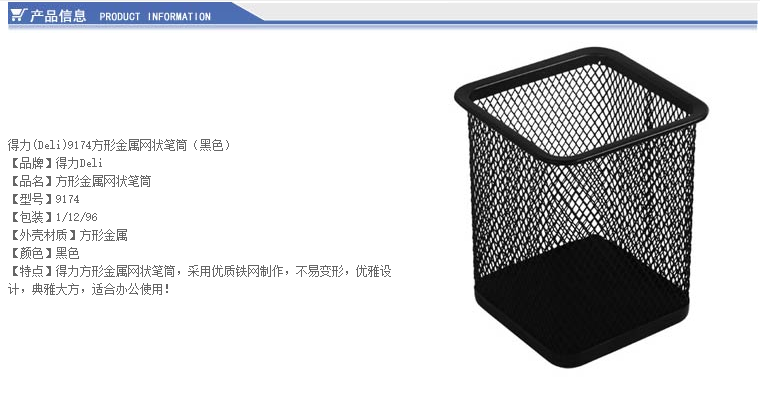 得力9174方形筆筒(黑)(只)